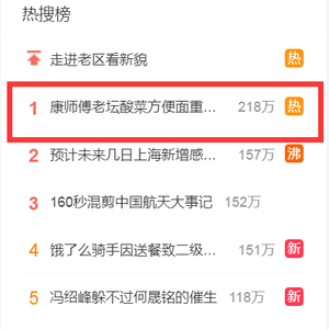4月13日,“康师傅老坛酸菜方便面重返超市货架”登上热搜,引起不少网友关注与讨论。该消息称,在云南部分商超内,与老坛酸菜方便面一起放在货架上的,还有一些公告函、文件。而北京青年报记者走访部分超市发现,康师傅老坛酸菜牛肉面这一产品已经重回一些超市货架,虽然没有张贴公告函,但是仍旧价签、桶面包装上做了文章。