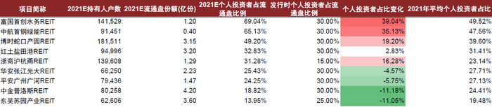 图表4:第一批9单公募REITs 2021年个人投资者持有份额占流通盘份额比例