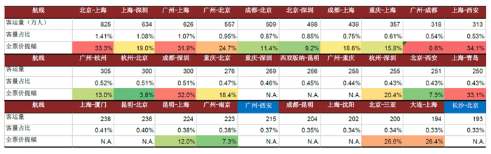 国内航线:前20大航线提价10%,三大航利润增厚20-35亿元