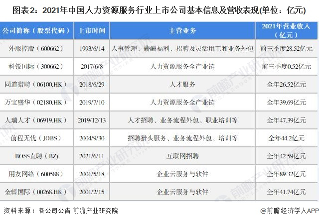 1、人力资源服务行业上市公司汇总