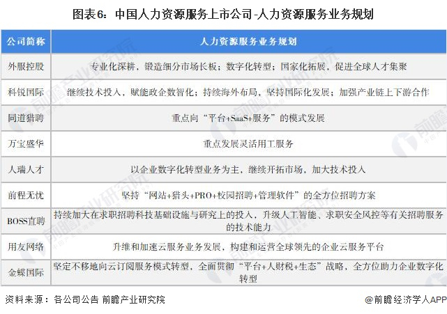 4、人力资源服务行业上市公司人力资源服务业务规划对比