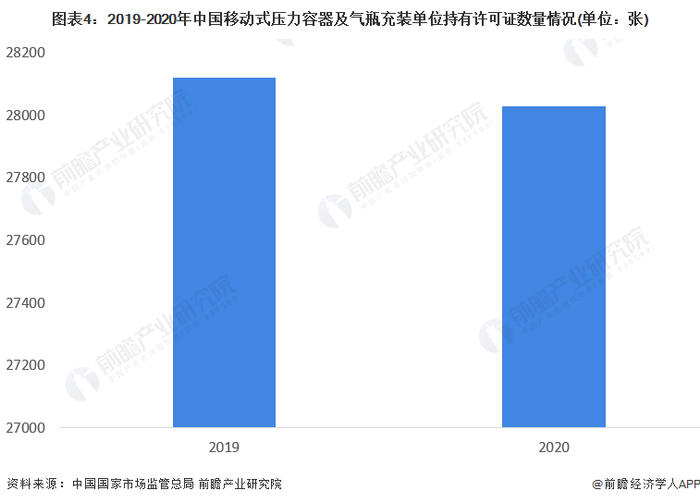 中国移动式压力容器及气瓶充装单位数量和许可证均有所下滑