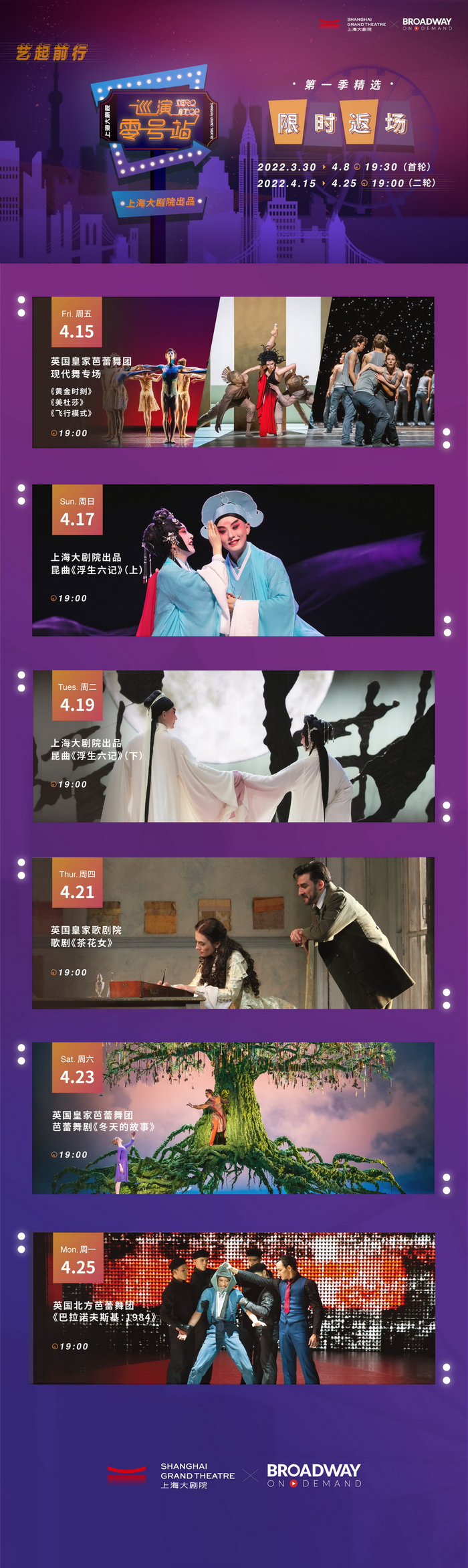 艺起前行,艺起守沪!为响应观众对高品质演艺内容的热切需求,4月15日至4月25日,《巡演零号站》限时返场二轮放送将再次和观众相约线上。
