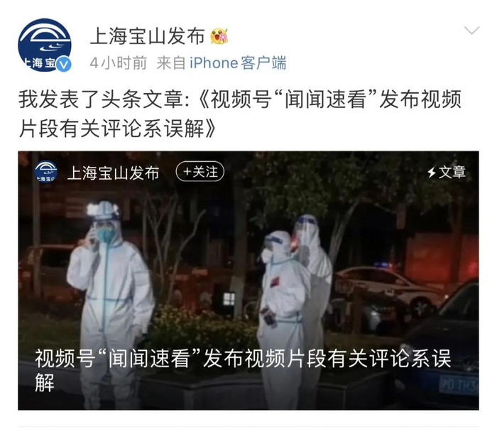 4月13日,上海市宝山区人民政府官方微博“上海宝山发布”通报了该视频的核查情况。