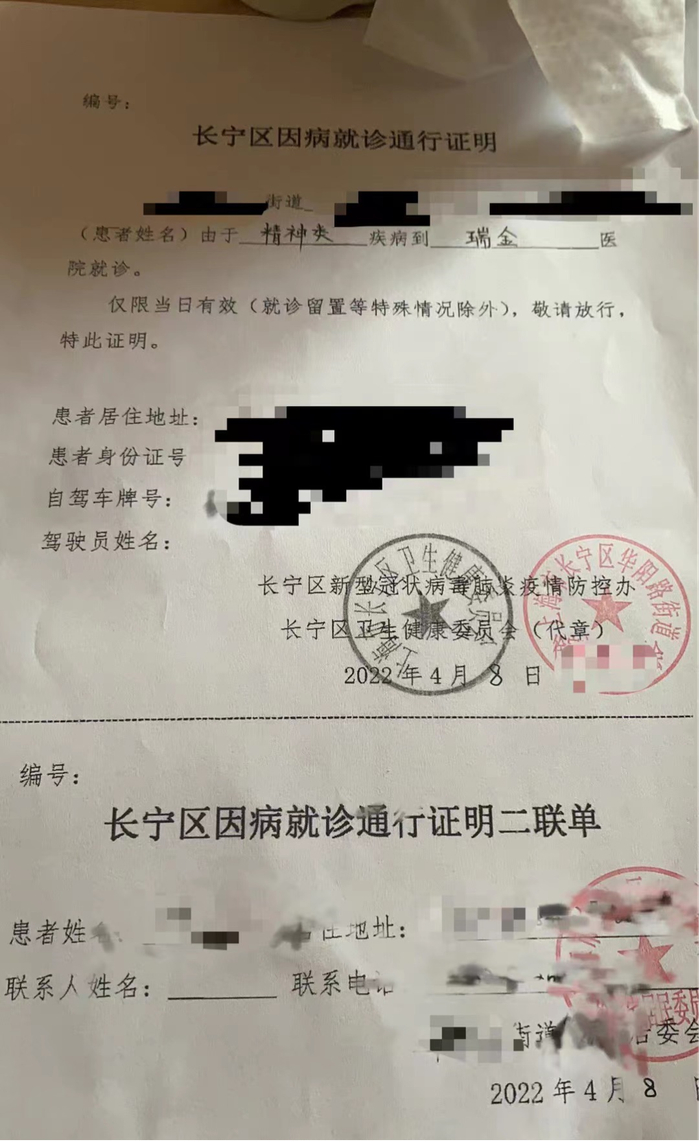 “精神类疾病”。接过保安送来的通行证,小董觉得,自己的脸被证件上这五个字抽得火辣辣的。但家里的氟伏沙明只剩下2片了,她必须靠这张通行证才能出门买药。