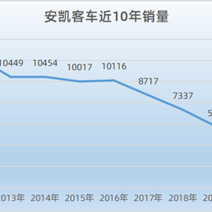 据了解,安凯客车销量已连续四年下滑。2016年至2020年,该公司销量分别为10116辆、8717辆、7337辆、5692辆和5605辆,分别同比增长1.49%、-13.96%、-15.83%、-22.42%和-1.53%。