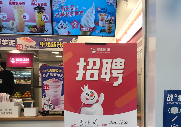 蜜雪冰城招聘(图片拍摄:吴容)