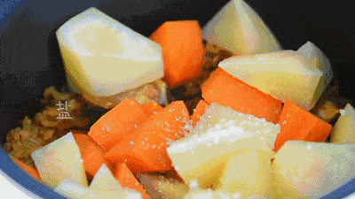 4.炒好的土豆倒入电饭锅后开始煮饭,煮好后即可装盘。
