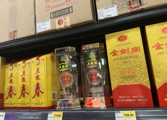 (北京某线下商超售卖的名酒中低端酒 张瀚文摄影)