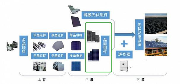 光伏组件是太阳能发电系统中的核心部分。其作用是将太阳能转化为电能,或送往蓄电池中存储起来,或推动负载工作。