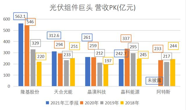 尽管阿特斯单晶硅创收与日俱增,但还是无法和其他一线组件巨头相提并论。