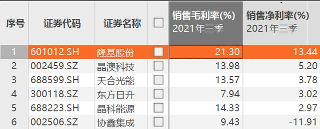 6家光伏组件上市公司毛利率多在7%-15%之间,净利率多在2%到5%之间。上游硅料领域2家巨头的毛利率在25%到68%之间,净利率在13%至54%之间。