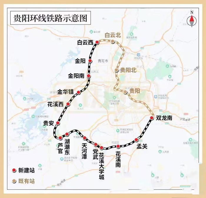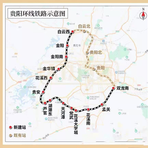贵阳市域环城快铁全长约113km,为国铁双线电气化铁路,本次工程共13个新建站。该铁路连接路网中的渝贵铁路、沪昆高速、贵广客专、成贵客专、贵开铁路、贵南高铁(在建)、贵兴铁路(在建)等7条铁路干线,在贵阳地区形成以贵阳为中心,辐射遵义、桐梓、毕节、盘州、兴义、都匀、荔波、铜仁、凯里、开阳等周边重要地区的“一环七射”枢纽格局。