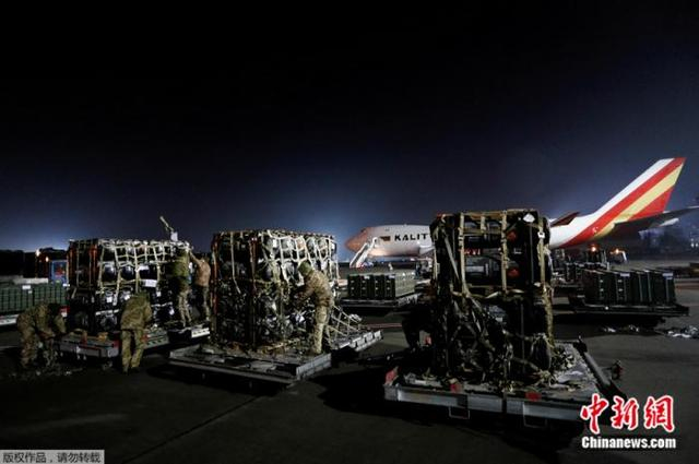 当地时间2月10日,美国飞机将军事援助物资运抵乌克兰基辅鲍里斯波尔国际机场。