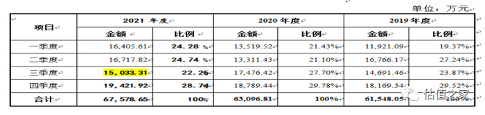 个人洗化用品因第三季度气温较高一般是销售旺季,我们观察上表可以看到2021年度第三季度收入居然全年最低,这和常识相悖。只有2020年第三季度销售接近略微正常些。
