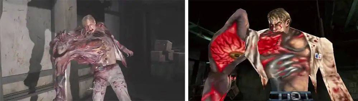 ▲左为《生化危机 2》重制版,右为《生化危机 2》原版