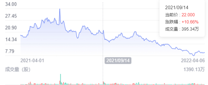 中选结果公开前(2021年9月14日)春立医疗股价情况