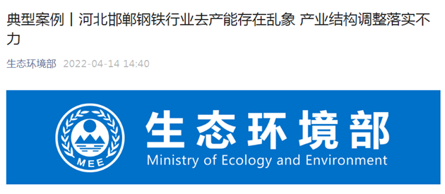中国网财经4月14日讯(记者 钟文鑫)据“生态环境部”微信公众号消息,2022年4月,中央第一生态环境保护督察组督察河北省发现,邯郸市落实钢铁去产能工作不力,存在违规建设钢铁项目、虚假置换钢铁产能等乱象,产业结构调整落实不力,相关部门监管形同虚设。