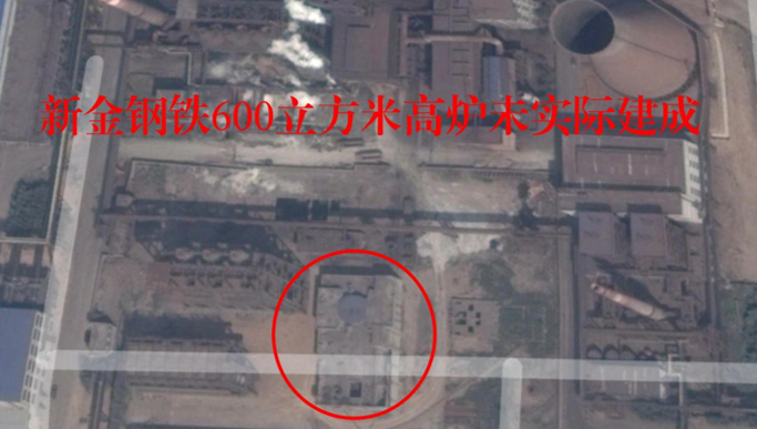 图1 新金钢铁在未取得相关审批手续情况下违规建设高炉。2022年2月,前期暗查使用无人机拍摄,主体建筑已经完工(来源:“生态环境部”微信公众号)