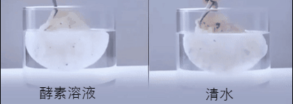 把有顽固污渍的贝壳,分别浸泡在酵素溶液和清水中。