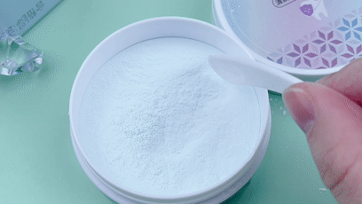 近处可以看到,淡蓝色的牙粉中还有云母的珠光,非常精致。