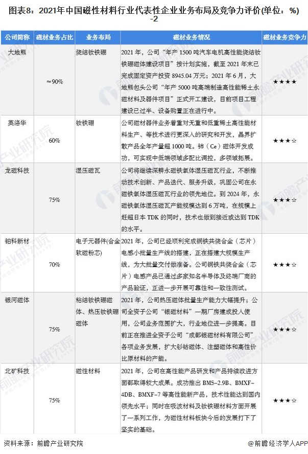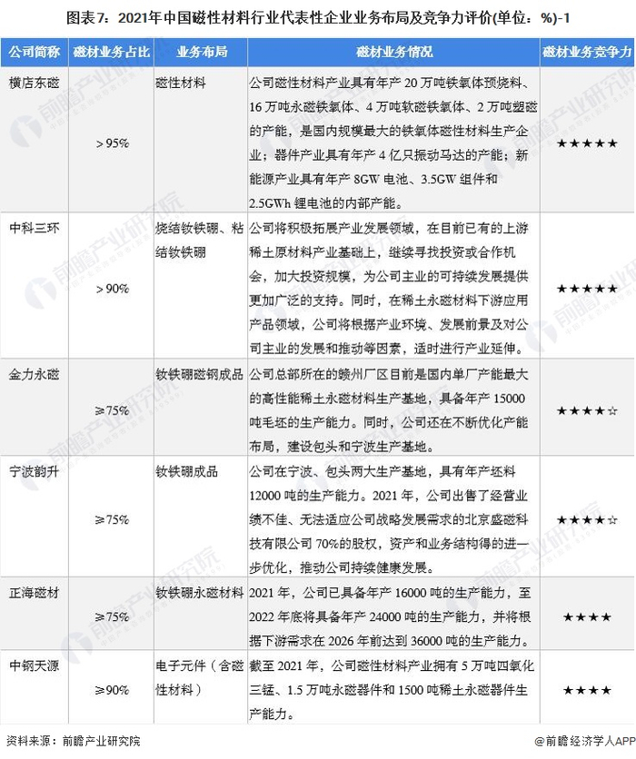 5、中国磁性材料行业企业布局及竞争力评价