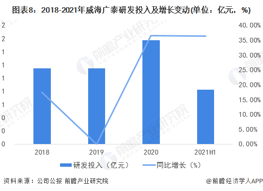 从公司研发投入的角度来看,2020年,公司委托外部研发及研发材料有所增加,且随着公司效益的提高,公司加大研发投入。2021年上半年,全年研发投入金额达0.82亿元,同比增长36.34%。由此可见,公司研发投入情况较好。