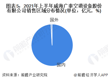 威海广泰空港设备股份有限公司产品遍布中国各大航空公司、机场、飞机制造公司和试飞院,出口到亚洲、欧洲、非洲、南美洲和大洋洲的60多个国家和地区。2021年上半年,受全球疫情影响,公司在国内营业收入占比达到99.09%;国外及中国港澳地区营业收入占比仅0.91%。