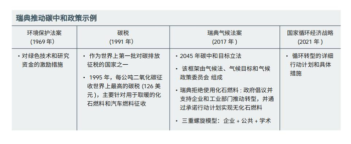在解决环境污染和减缓气候变化方面,瑞典一直是“先行者”。作为世界上第一批对碳排放征税的国家之一,瑞典建立起了针对绿色技术的激励机制,针对工业体系推出特别的碳税政策以减少化石燃料等一系列计划,既着眼于限制排放,又促进可持续方法的创新和使用,积累下了丰富的经验以及实践样本。