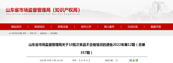 山东省市场监管局公布34批次速冻食品抽检合格信息