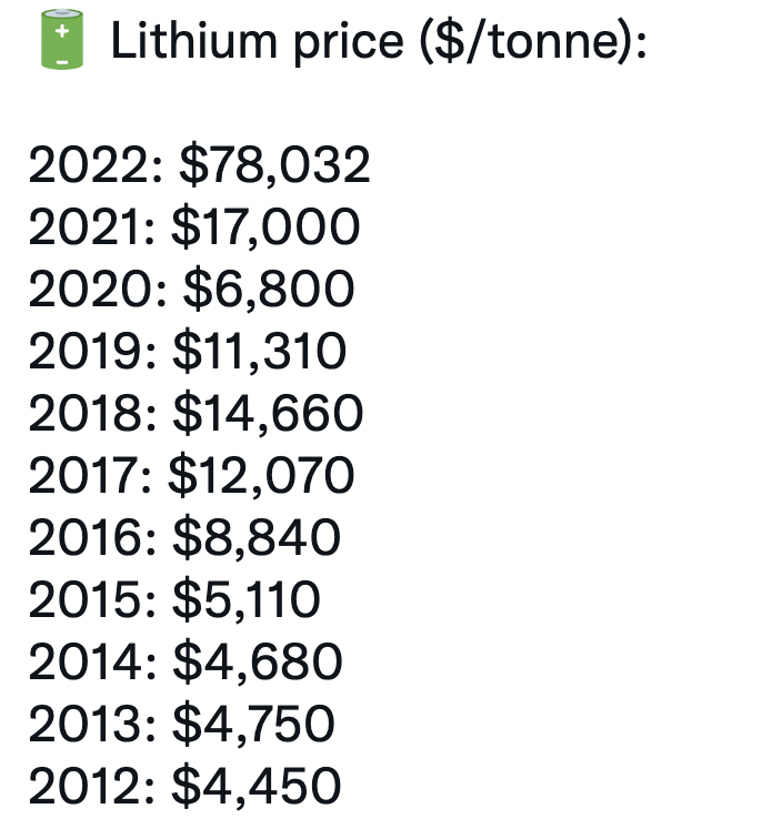锂的价格已经涨到了疯狂的水平!如果开采成本不提高的话,特斯拉实际上可能不得不直接进入规模化的开采和提炼。