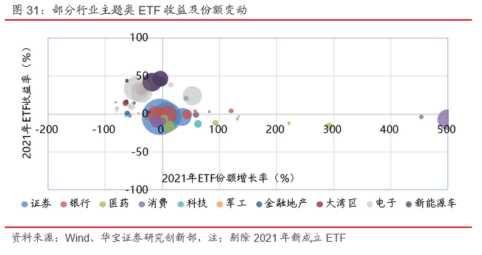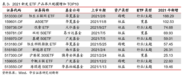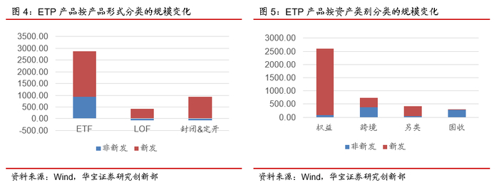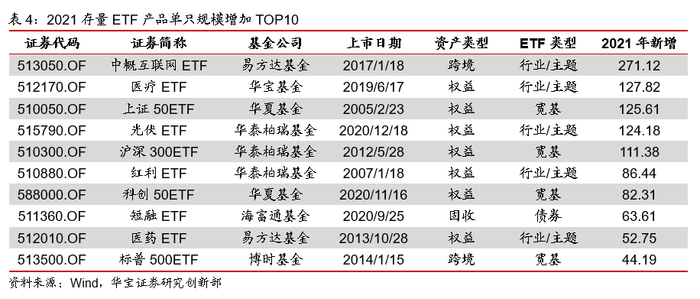 总体上看,相较于2020年底,ETP规模共增加4071.57亿元,其中,3272.10亿元来自新发基金,799.47亿元来自已有产品的规模增加。