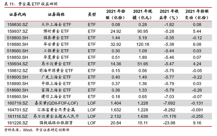 4. 附录:各类ETP产品2021年业绩回顾