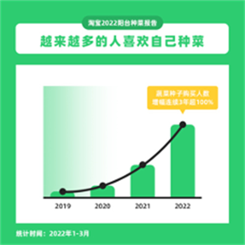 中国经济周刊-经济网讯 4月15日,淘宝近日发布的《2022阳台种菜报告》数据显示,今年一季度淘宝天猫平台各类蔬菜种子销量同比暴涨,种子购买人数连续三年增幅超100%,越来越多人喜欢自己种菜。从购买城市来看,北京地区购买人数最多,上海、杭州位列二三。