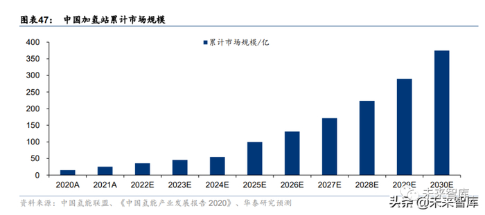 预计我国加氢站 2025 /2030 年累计市场规模分别为 100/375 亿元。关键假设: