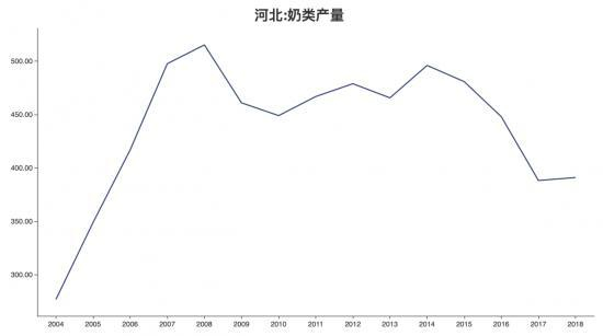 相关数据曾披露,君乐宝所在的河北大本营,近年来奶类产量总体呈现出滑坡趋势。2008年的奶类产量为515.3万吨,而2018年退步到了391.1万吨,衰减幅度达到了24.1%。