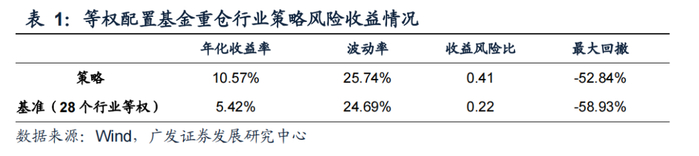 在上一篇报告中,我们提到按照基金持仓行业市值作为权重,进行重仓行业的配置,相对等权配置方法在绩效方面有所提升。这里我们也尝试按照估算仓位(回归系数)作为权重对重仓行业进行配置,发现策略绩效差异很小。