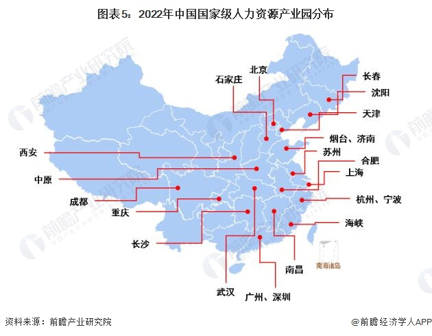 自2010年人力资源社会保障部在上海建立首家国家级人力资源服务产业园以来,国家级产业园在推动人力资源服务业高质量发展、促进就业、优化人力资源配置等方面发挥较大的积极作用。截至2021年2月,全国国家级人力资源服务产业园数量已达22家,分别位于上海、重庆、中原、苏州、杭州、海峡、烟台、长春、南昌、西安、成都、北京、天津、广州、深圳、长沙、合肥、武汉、宁波、石家庄、沈阳和济南。