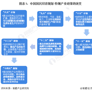特钢产业是基于传统钢铁产业升级发展的需求而快速兴起的朝阳产业,也是实现制造强国和供给侧改革的关键基础工业原材料产业。根据我国国民经济“八五”计划至“十四五”规划,国家对特钢产业的发展引导政策经历了从积极发展不锈钢等品类到重点发展高速铁路用钢等关键钢材品种,再到创新突破高品质特殊钢材、高性能合金、高温合金等先进金属材料的历程,政策层面对特钢产业发展技术水平的要求逐渐提升。