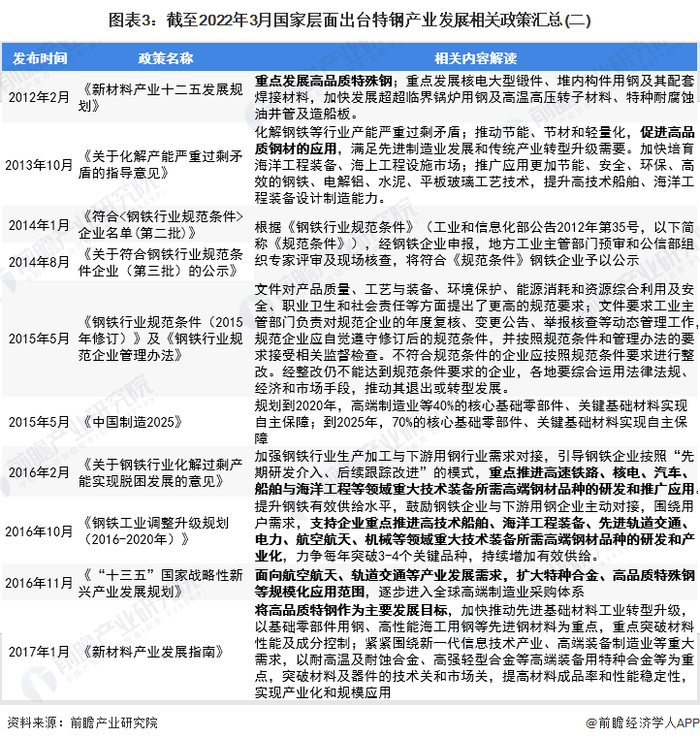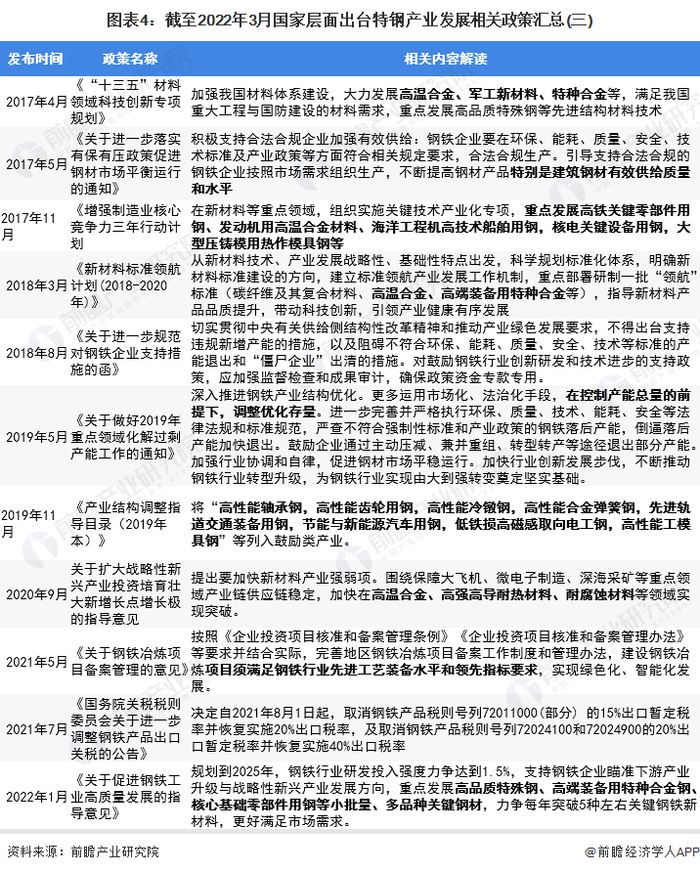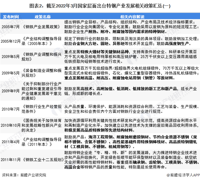——国家层面特钢产业发展政策汇总