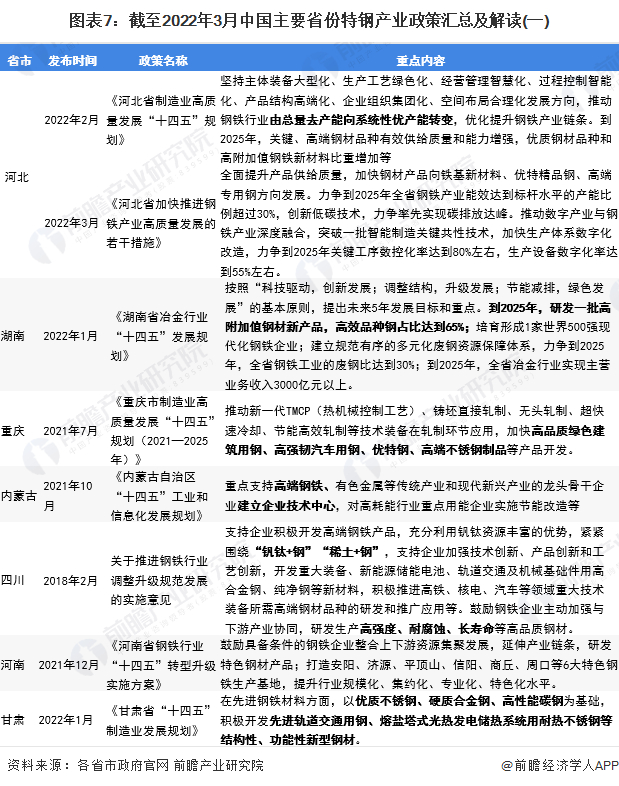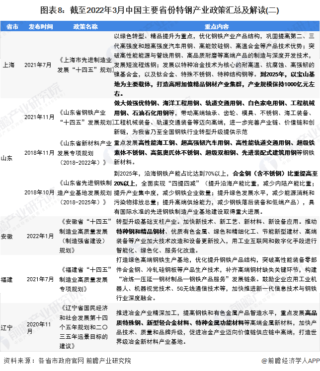 重磅!2022年中国及31省市特钢产业政策汇总及解读(全)以支撑下游产业升级与战略性新兴产业发展为主要目标