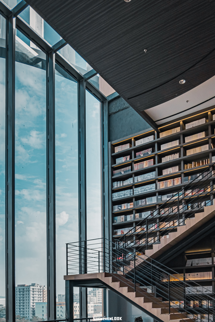 书城一共有7层楼,藏书量约70万册,分设为艺术馆、人文馆、青春阅读馆等六大主题阅读馆。每层的设计风格各不相同,搭配的灯饰也均为不同气质。