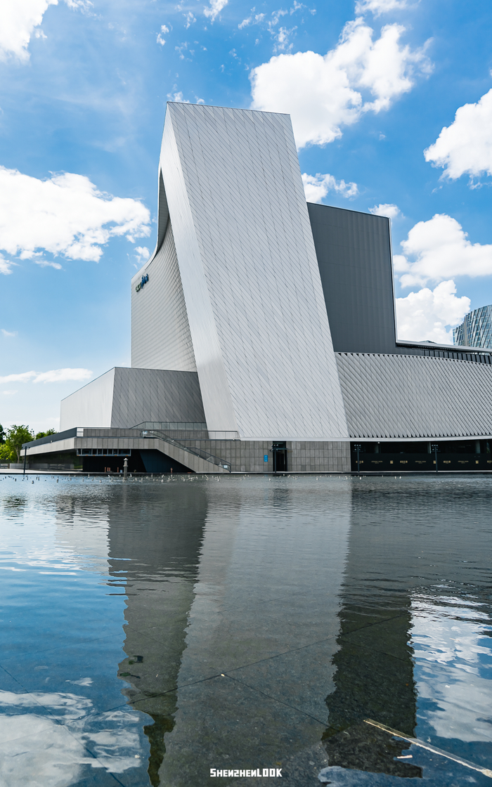 滨海艺术中心坐落于前海湾畔欢乐港湾,由香港许李严事务所主持,建筑设计大师严迅奇及其团队操刀设计。依海而建的演艺中心,以海浪为灵感,赋予建筑流动之感。