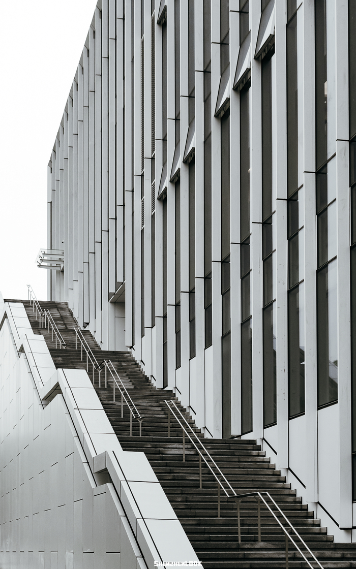书城远观是八面体多边形结构,近看如翻开的书页。不同方位倾斜的金属外板,可根据太阳的不同角度调节温度摄入。