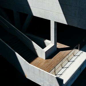 建筑凸出的楼阁,与周围的公园和海滨景色融为一体,参观者能够在其中自由漫步,欣赏周遭的自然景色。