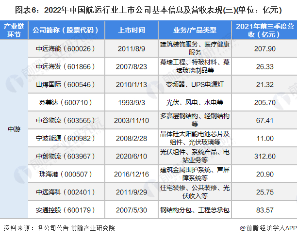 本文核心数据:航运行业上市公司营业收入、航运行业上市公司重点项目等。