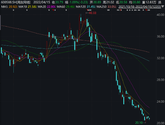 但是用友网络今年股价表现不佳,在1月24日见到阶段高点40.33元/股后,跌势非常强,不到3个月时间股价已经腰斩了,截至4月15日收盘,用友网络报收20.79元/股,较定增价格下跌了35%左右,参与机构阶段性浮亏不小。当然用友网络定增股份的解禁时间是在今年7月,我们且看其股价是否能够涨回来。