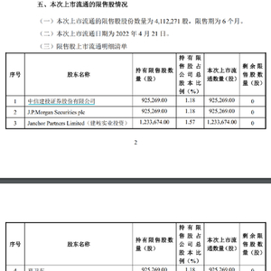 3月30日晚间,长川科技发布《关于向特定对象发行股票解除限售上市流通的提示性公告》,此次解除限售股份数量为812.68万股,占总股本的1.3448%,解除限售股份的上市流通日期为2022年4月6日。