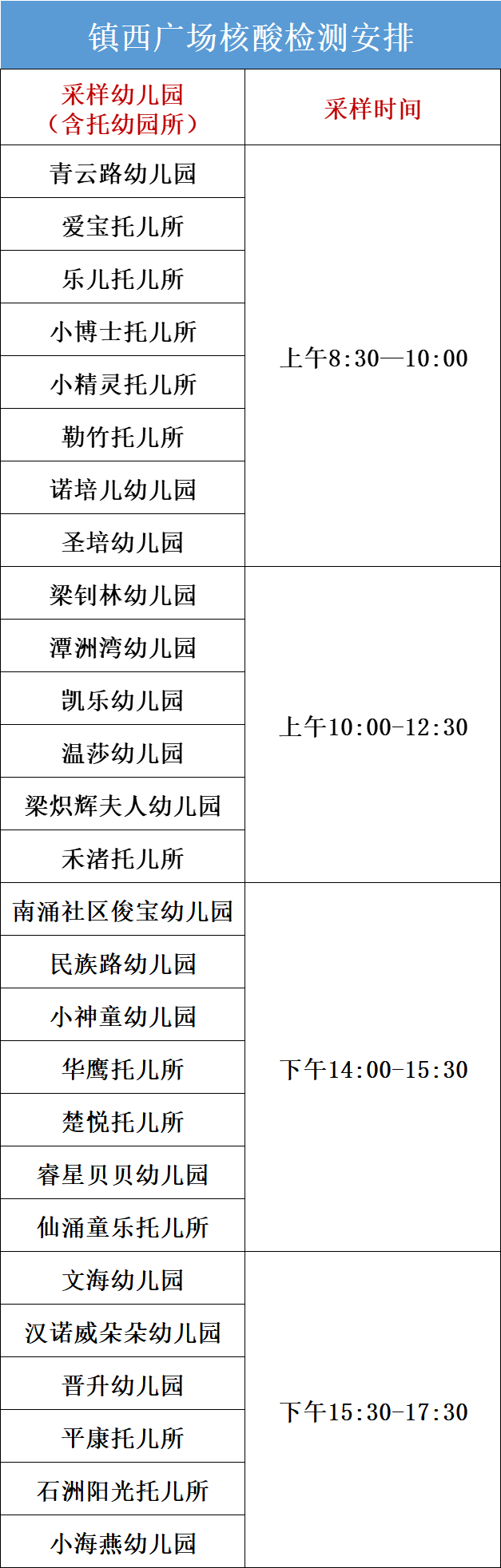 为做好我镇中小学、幼儿园(含托育机构)师生返校复课工作,我镇定于4月16日(周六)开设学校师生核酸检测专场,具体安排如下: