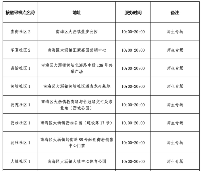 乐从镇关于开展辖区学校专场核酸检测的通告